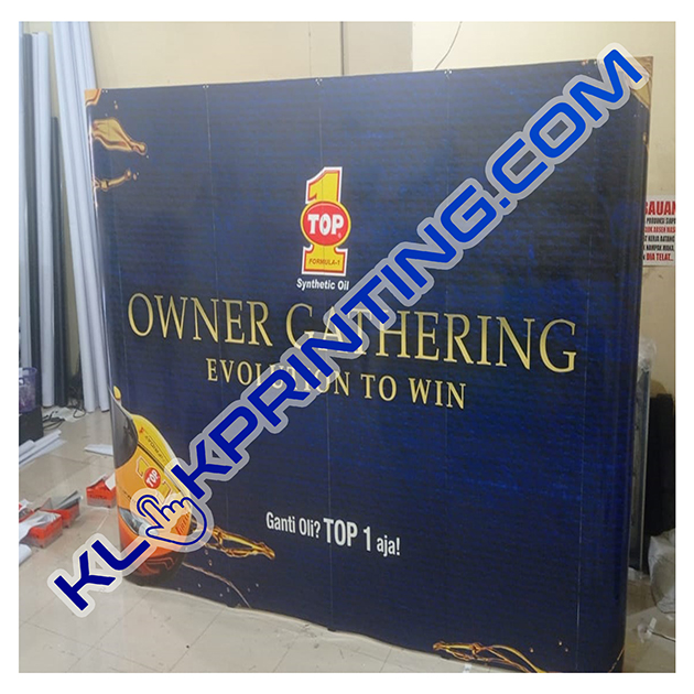 backdrop / latar panggung lipat bongkar pasang, mudah instalasi, visual dengan stiker HD / tajam